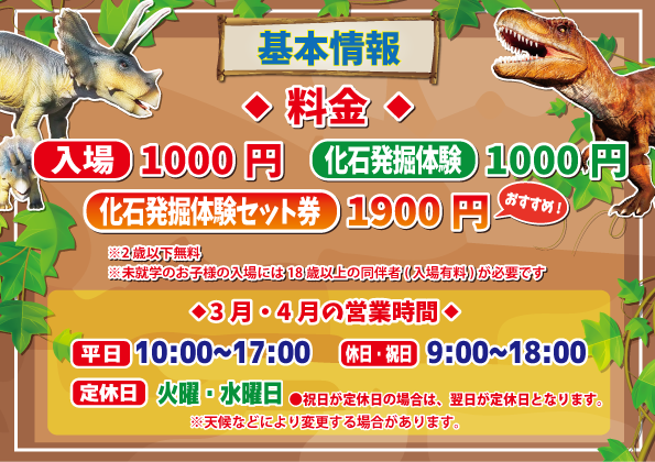 ダイナソーアドベンチャーツアー通常料金1,000円→900円