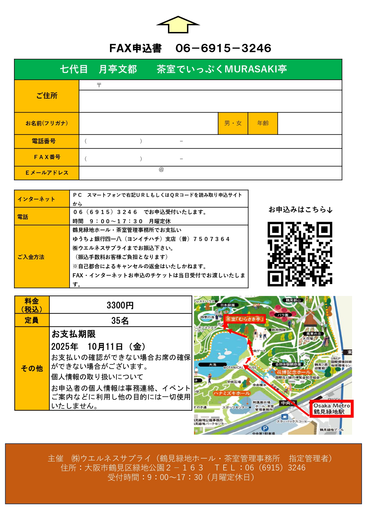 お問い合わせ:鶴見緑地ホール・茶室管理事務所 電話/FAX:06-6915-3246 主催:株式会社ウエルネスサプライ