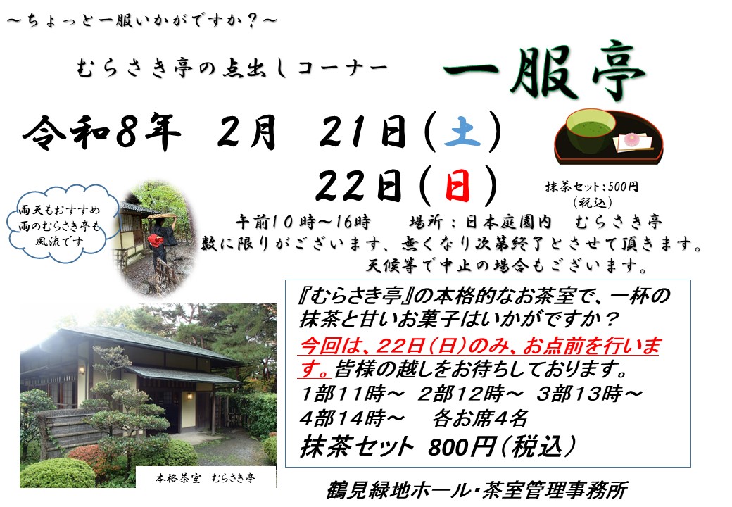 2月22日(日)のみお点前も同時開催いたします。各時間先着(4名)となります。