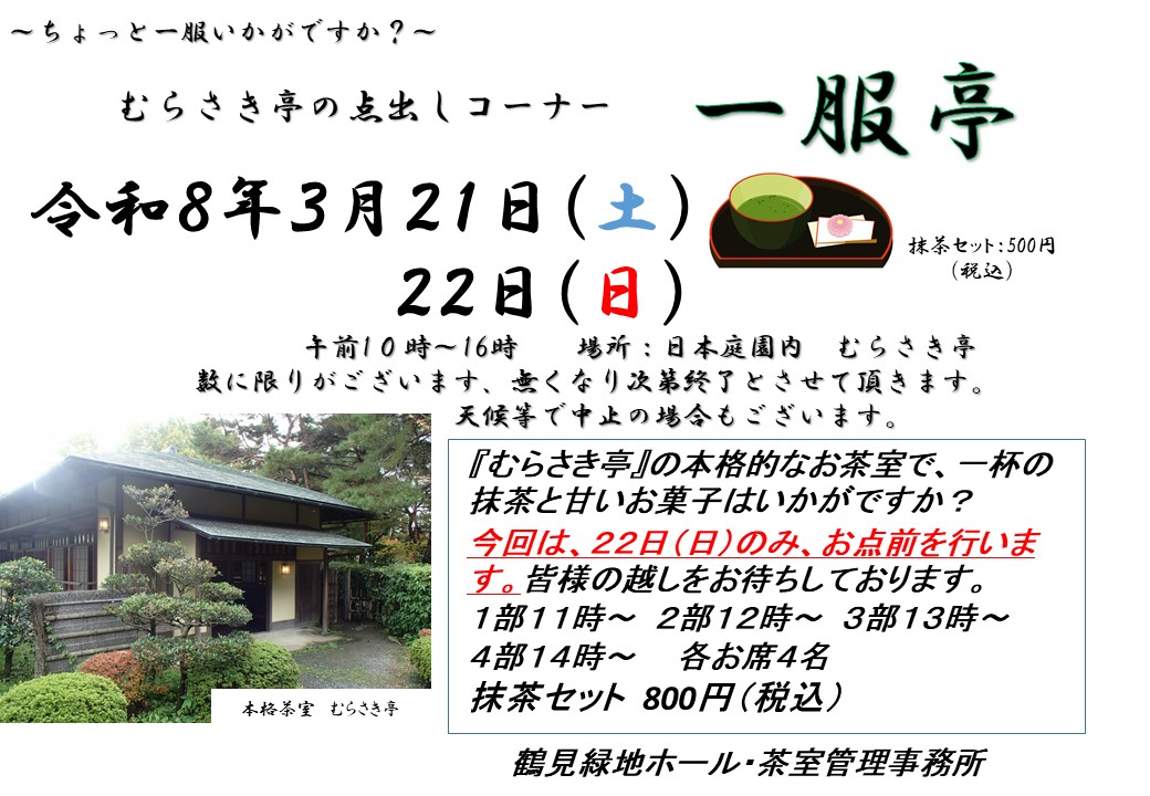 3月22日(日)のみお点前も同時開催いたします。各時間先着(4名)となります。