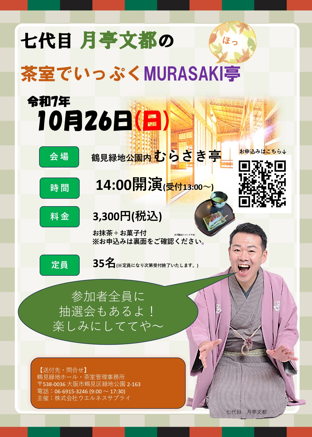 七代目 月亭文都の茶室でいっぷくMURASAKI亭【10/26日(日)】