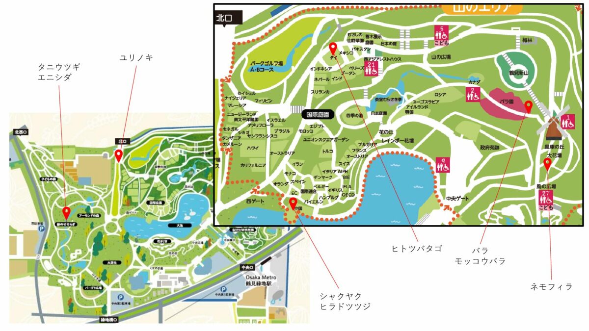 パークゴルフ場管理事務所東側/園内各所